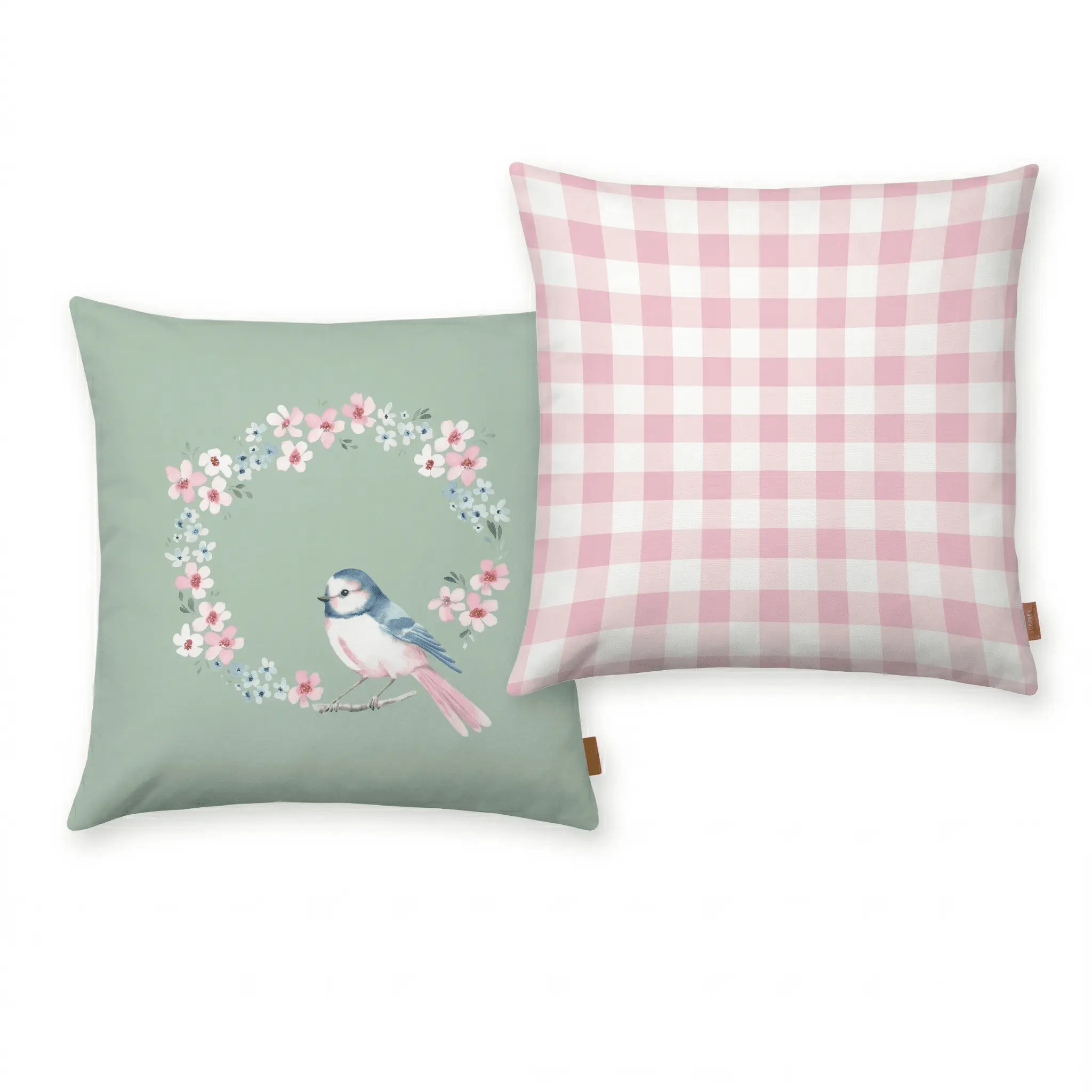 Kissen Kissen Blumenkranz Vogel grün